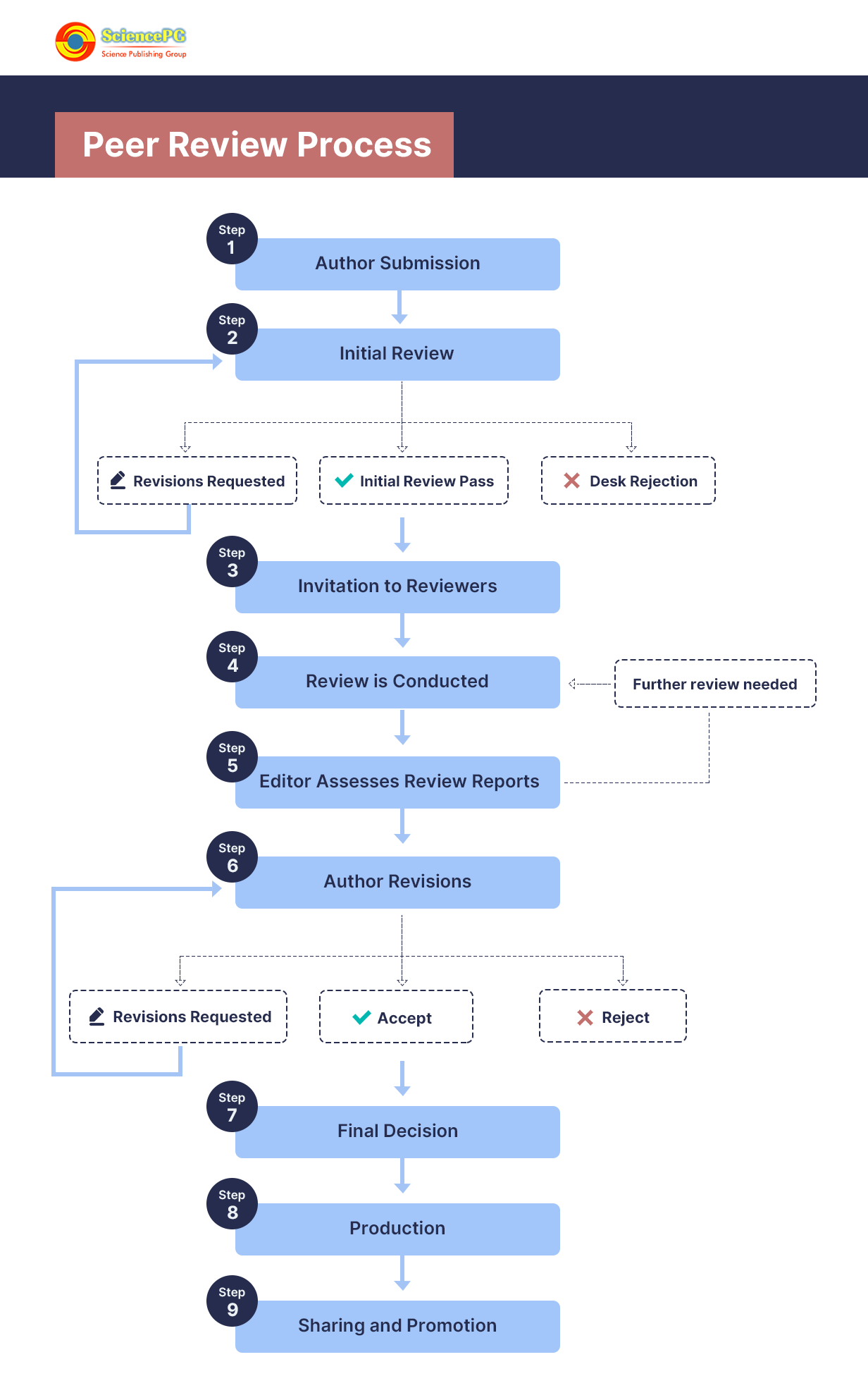 Upon submission to Science Publishing Group, your manuscript embarks on a peer review process, where fellow experts rigorously assess the quality of your research. These peer reviewers are dedicated to ensuring that your work adheres to high standards of rigor, coherence, and relevance within your field.